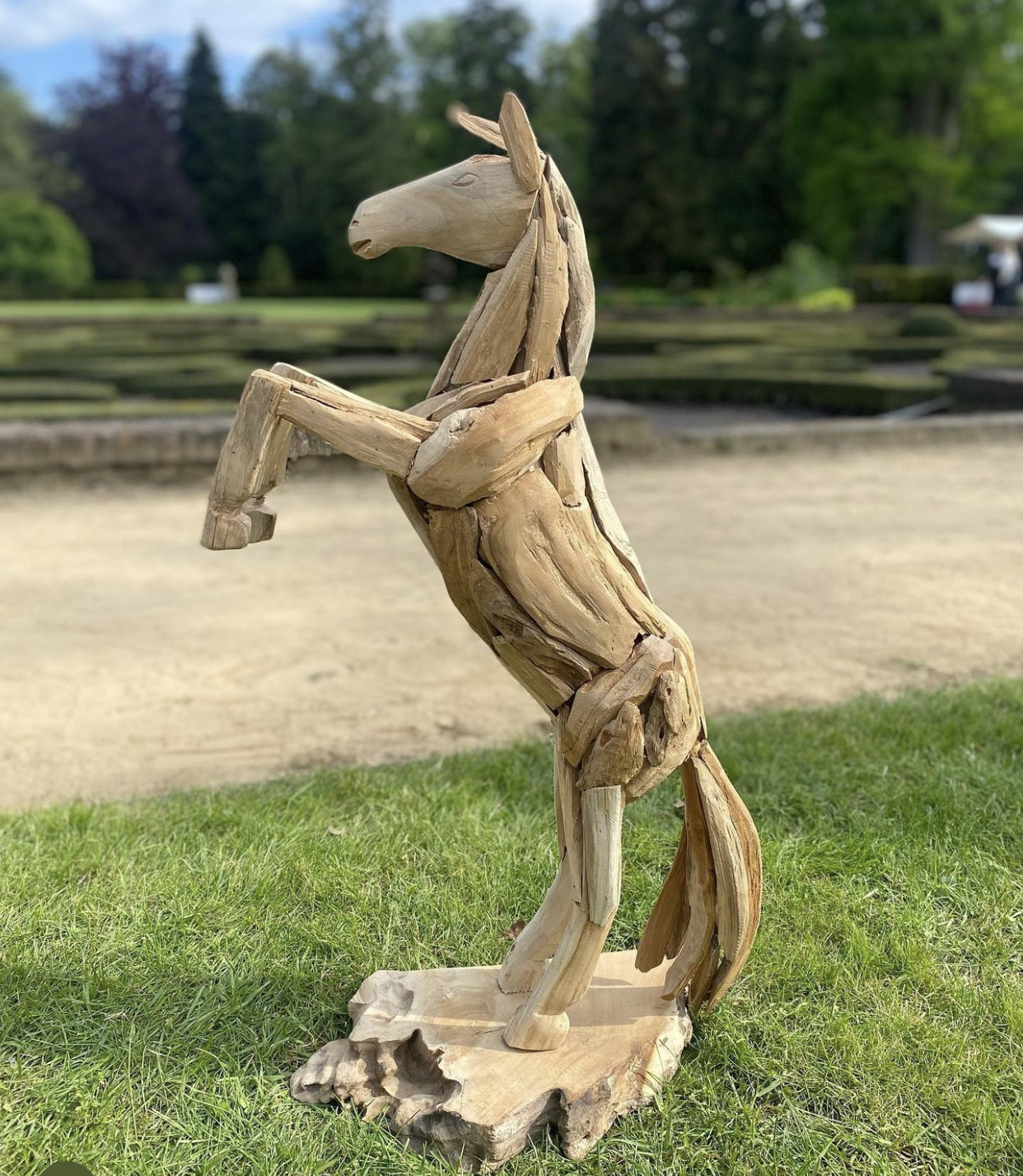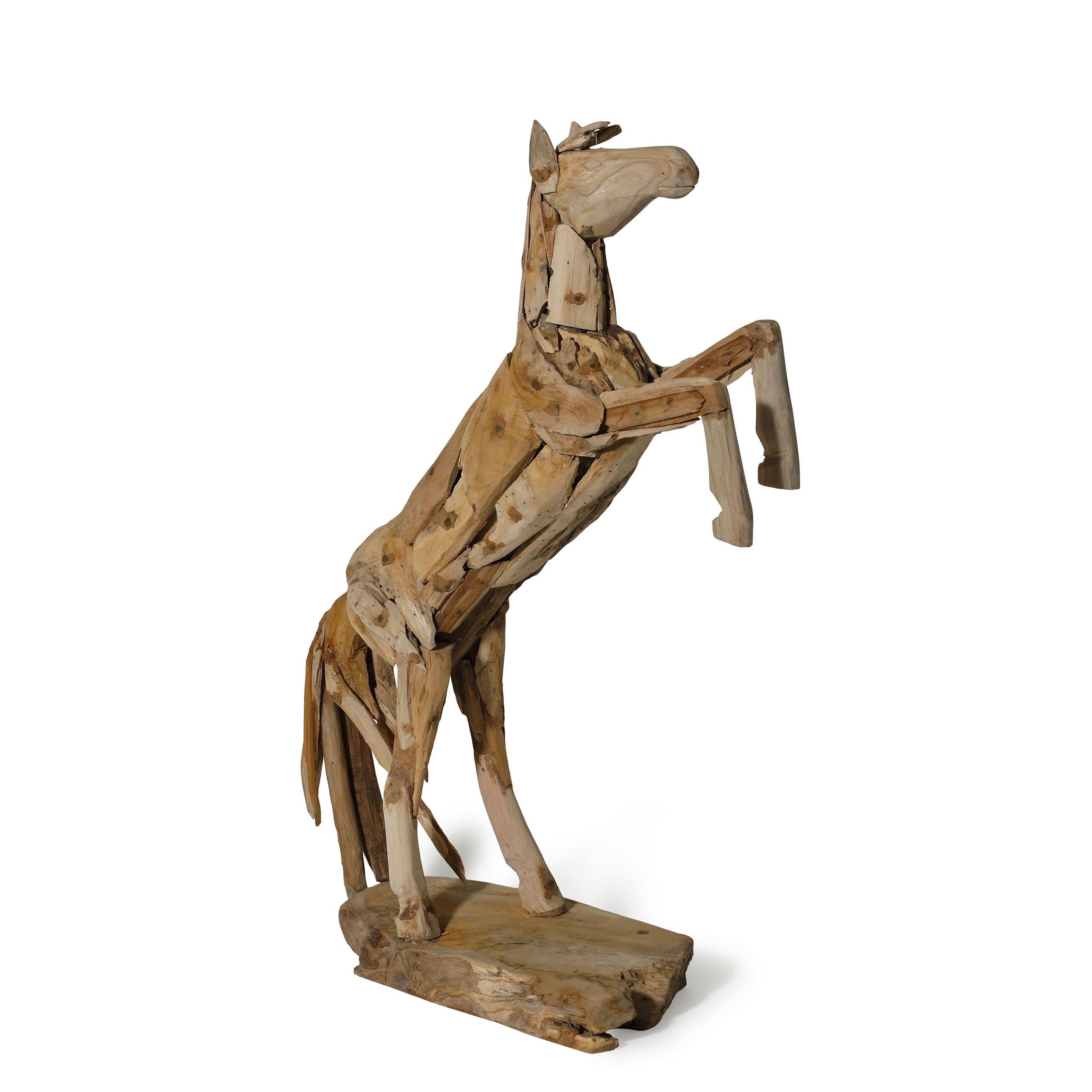 Dit teakhouten steigerend paard is een prachtige decoratie om trots op te zijn. Met zijn natuurlijke schoonheid en vakmanschap trekt het de aandacht en voegt het een vleugje elegantie toe aan elke ruimte. 74x45x20cm