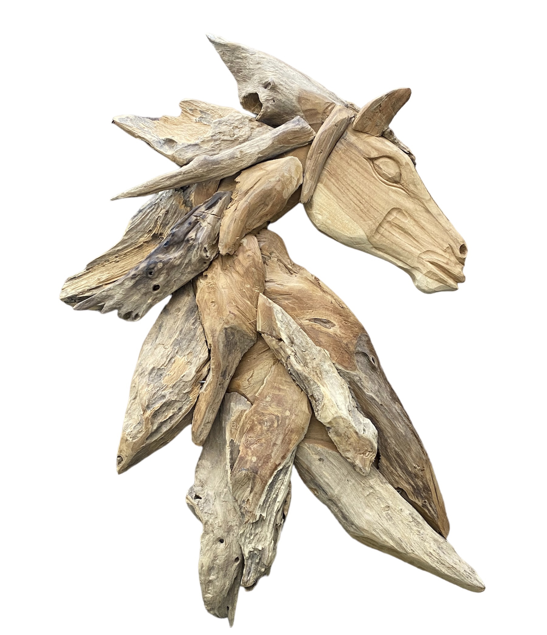 Ontdek ons teakhouten paardenhoofd voor aan de muur. Stevig en stijlvol. Een echte blikvanger van hoogwaardige kwaliteit. Natuurlijke schoonheid op een elegante manier. 85x55cm.